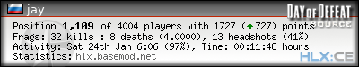 | 1 | »» GunGame only! // by www.BASEMOD.net [EU] | 32 | 100.00% | 8 | 4.0000 | 13 | 100.00% | 0.4063 |