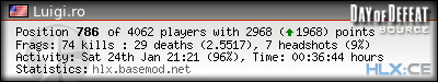 | Rank | Server | Kills | % | Ratio | Deaths | K:D | Headshots | Percentage of Headshots | % | HS:K |