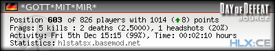 | Headshots per Kill: | 0.2000 (0.2000*) | |