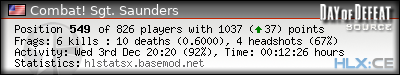 | Rank | Server | Kills | % | Ratio | Deaths | K:D | Headshots | Percentage of Headshots | % | HS:K |