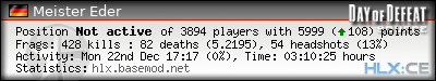 | 1 | »» 24/7 Sniper Server // by www.BASEMOD.net [EU] | 108 | 94.74% | 18 | 6.0000 | 12 | 85.71% | 0.1111 | ||