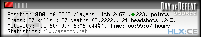 | Rank | Map | Kills | % | Ratio | Deaths | % | Ratio | K:D | Headshots | % | Ratio | HS:K |