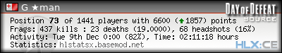 | Rank | Server | Kills | % | Ratio | Deaths | K:D | Headshots | Percentage of Headshots | % | HS:K |