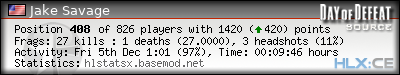 | Rank | Server | Kills | % | Ratio | Deaths | K:D | Headshots | Percentage of Headshots | % | HS:K |