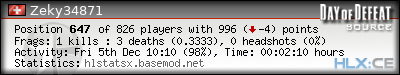 | Rank | Server | Kills | % | Ratio | Deaths | K:D | Headshots | Percentage of Headshots | % | HS:K |