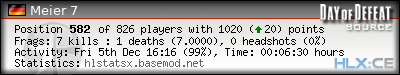 | Rank | Server | Kills | % | Ratio | Deaths | K:D | Headshots | Percentage of Headshots | % | HS:K |