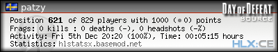 | Favorite Map:* | dod_hill_classic |