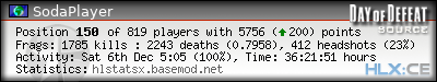 | 1 | »|» NEW «|« DoD:S - Headquater // » HQ activ | 18,030 | 100.00% | 23,500 | 0.7672 | 3,726 | 100.00% | 0.2067 |