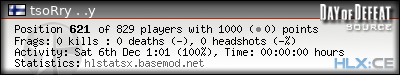 | Rank | Server | Kills | % | Ratio | Deaths | K:D | Headshots | Percentage of Headshots | % | HS:K |