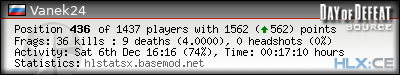 | Rank | Server | Kills | % | Ratio | Deaths | K:D | Headshots | Percentage of Headshots | % | HS:K |
