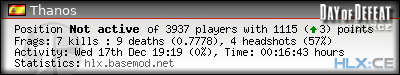 | Rank | Map | Kills | % | Ratio | Deaths | % | Ratio | K:D | Headshots | % | Ratio | HS:K |