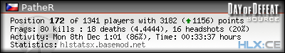 | Rank | Server | Kills | % | Ratio | Deaths | K:D | Headshots | Percentage of Headshots | % | HS:K |
